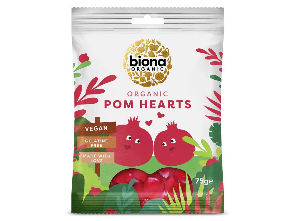 Rozžiarte deň červeným želé srdiečkom plným ovocnej chuti! Bio granátové želé srdiečka Biona sú ručne formované cukríky s nezameniteľným tvarom a príjemne ovocnou arómou granátového jablka. Vyrábané s dôrazom na čistotu a udržateľnosť, bez želatíny, bez chemických farbív a konzervantov.