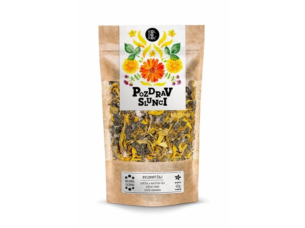 Bylinný čaj Pozdrav slnku od značky Koldokol je starostlivo namiešaná zmes liečivých bylín, navrhnutá na podporu imunitného systému, duševnej pohody a celkovej vitality. Obsahuje pamajorán obyčajný, ktorý podporuje trávenie a dýchacie cesty, ľubovník bodkovaný s pozitívnym vplyvom na náladu a spánok, nechtík lekársky a slnečnicu ročnú pre osvieženie a púpavu lekársku na prečistenie organizmu.