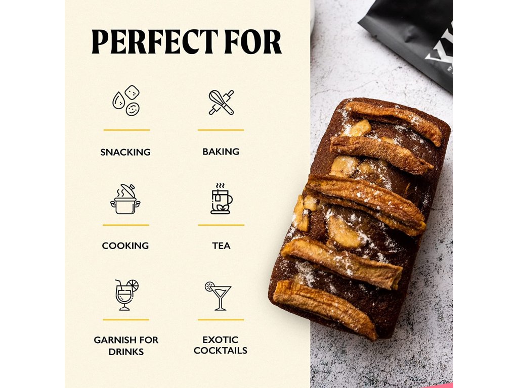 Vďaka šetrnému sušeniu si banány zachovávajú prirodzenú sladkosť, vláčnosť a jemnú textúru, ktorá poteší malých aj veľkých. Každé 25g balenie obsahuje asi dve celé banány – praktická a výživná desiata pre deti do školy, dospelých do práce alebo ako snack na výlety.
